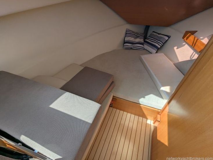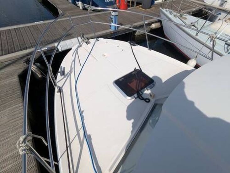 The clever usage of vacuum infusion allows a superior strength to weight ratio over more traditional construction techniques, resulting in improved efficiency, performance and economy. As a direct result Ocqueteau are able to use smaller engines to achieve the same speeds as many competitors whilst returning great economy, or higher top speeds than usually possible depending on engine choice. This particular was used as a demonstrator by the UK Dealer and sold to the current owner in 2017. The current owner is looking to downsize to a small fishing boat. The boat was last out of the water in May 2023 when she was antifouled, hull polished and engine anodes were changed