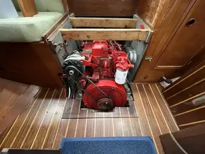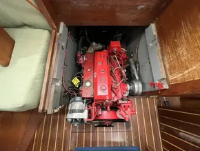 Solid teak flooring throughout the boat.