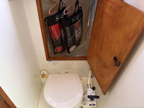 A separate heads compartment with a marine toilet